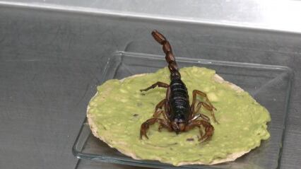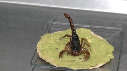 Imágenes grabadas en dicho mercado el viernes muestra al cocinero Carlos Reyes preparando y sirviendo tacos con escorpiones asados y tequila con un gusano en su interior a modo de chupito de bienvenida.