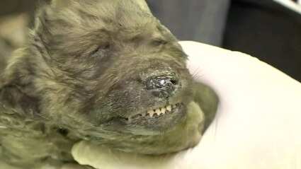 Científicos rusos dicen que un cachorro prehistórico bien conservado, encontrado en el permafrost siberiano el año pasado, murió hace 18.000 años y podría ser el canino domesticado más antiguo del mundo.