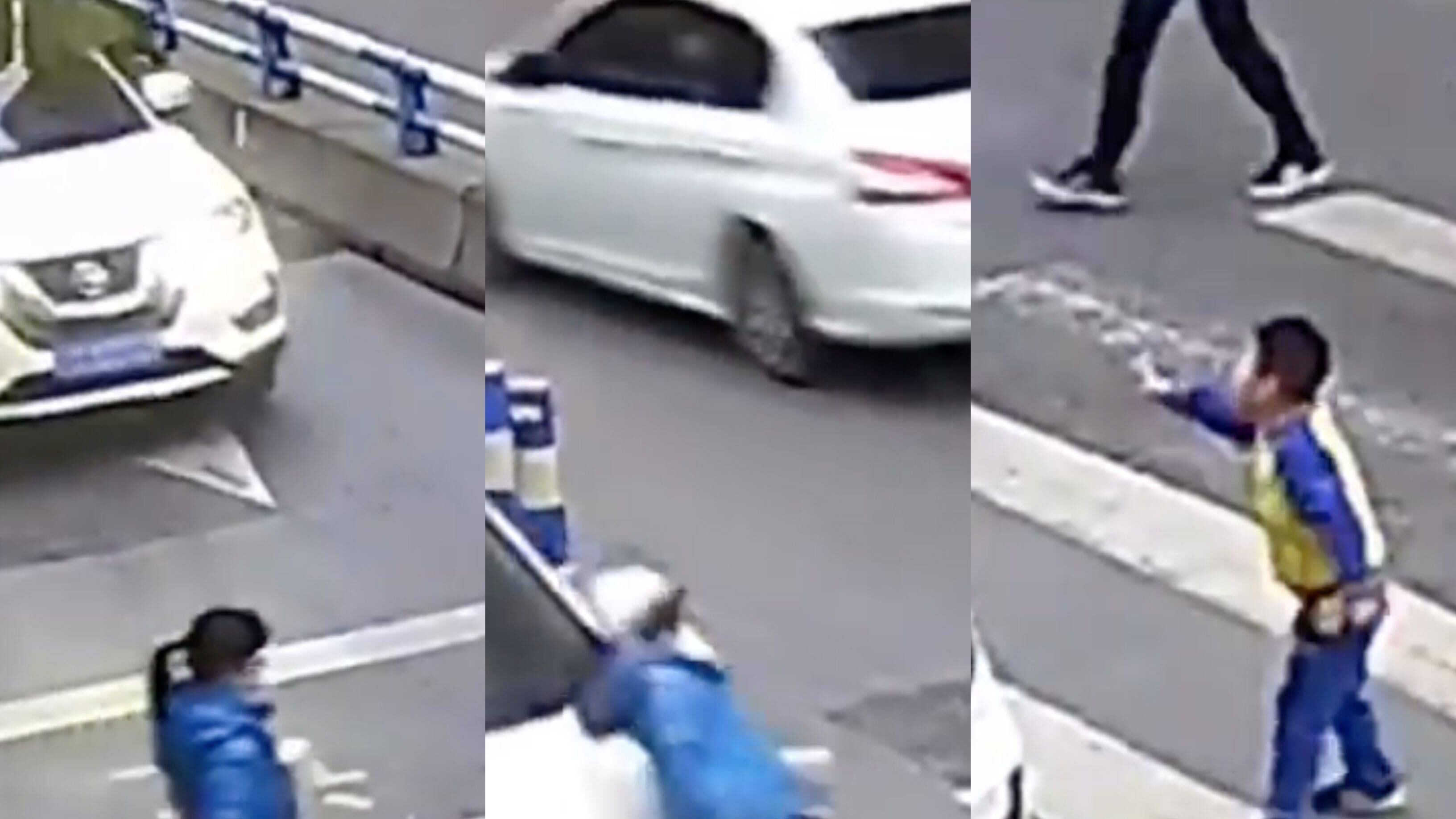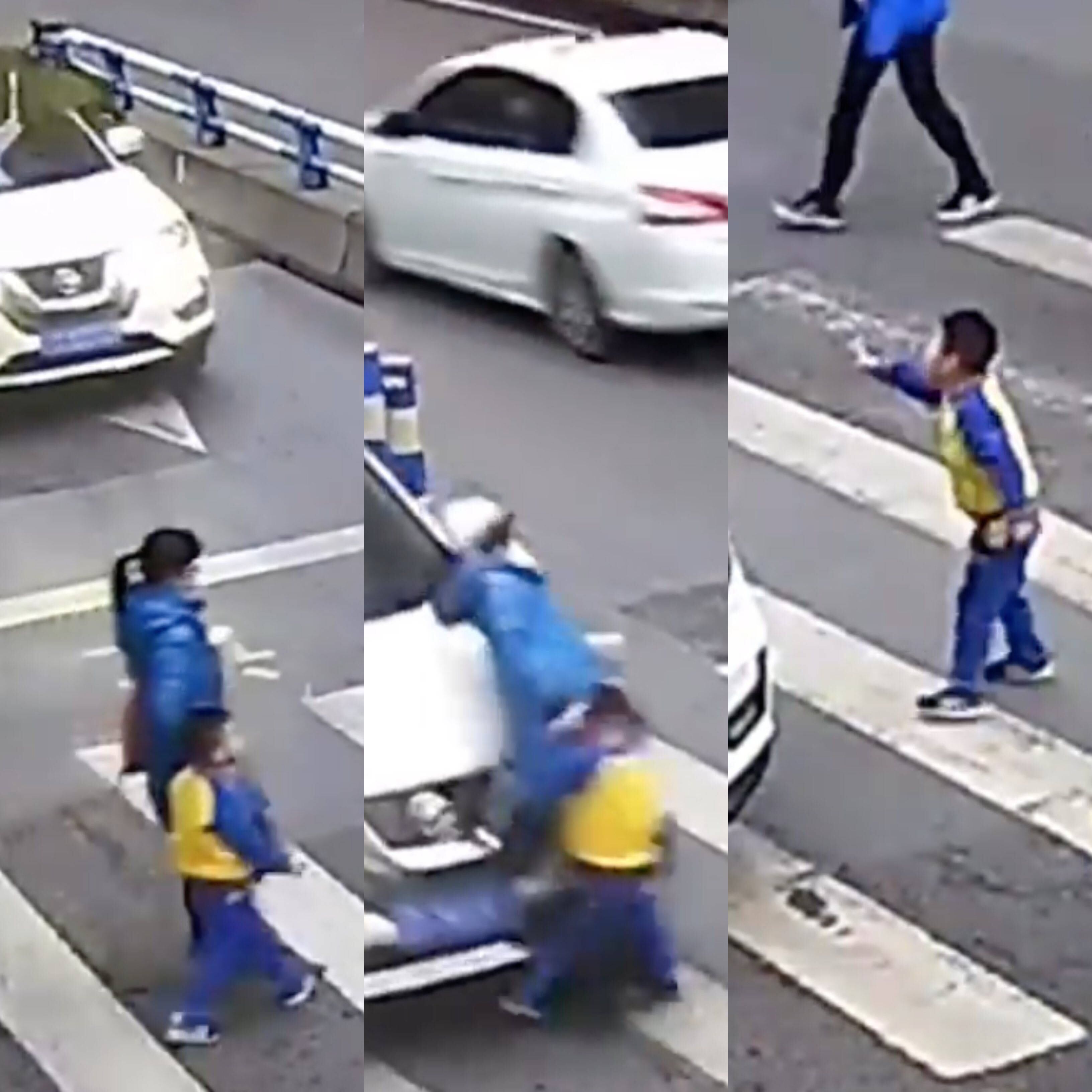 El hecho ocurrió en China, cuando la mujer junto con su hijo caminaban por el cruce peatonal, no obstante un conductor que al parecer iba distraído, no alcanzó a frenar a tiempo y aventó a ambos contra el pavimento.