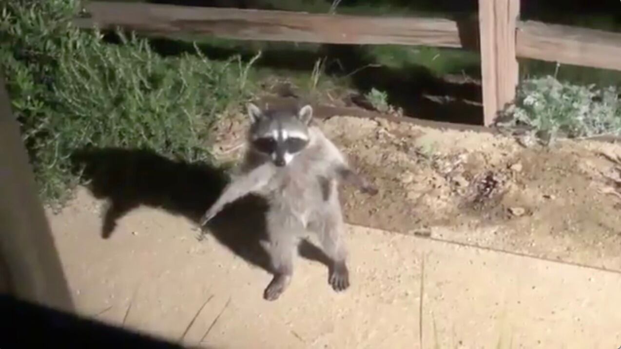 Dos mapaches se convirtieron en viral luego de su reacción tras ser sorprendidos paseando por un jardín.