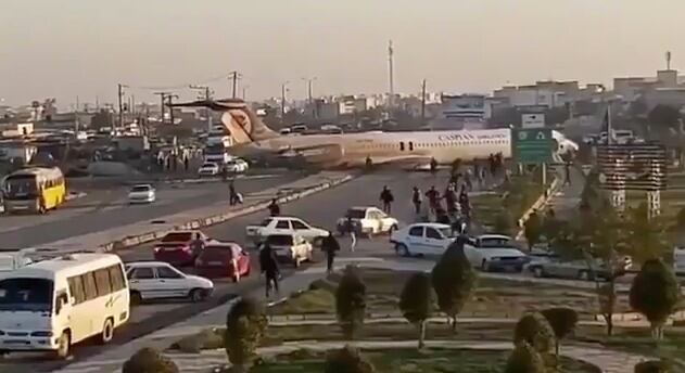 El vuelo de Caspian Airlines partió de Teherán y se dirigía al aeropuerto de Mahshahr cuando se deslizó fuera de control y terminó en medio de una carretera en Mahshahr.