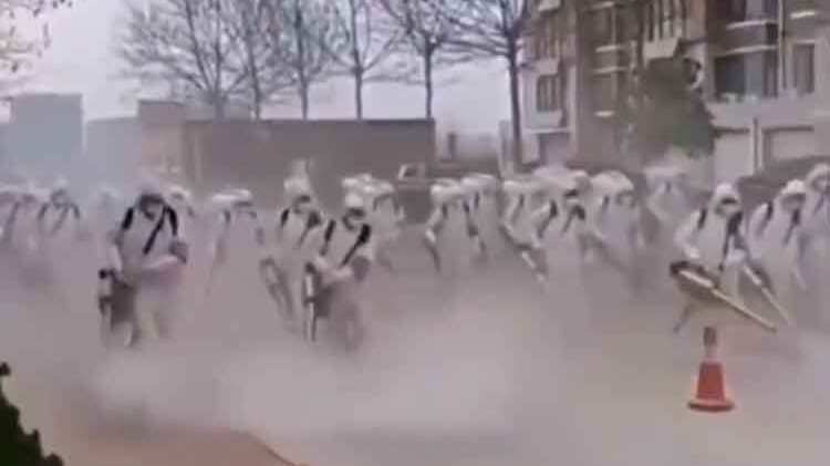 El video de un ejército de fumigadores al ataque en China se ha viralizado en las redes sociales debido a su manera de desfilar por las calles. (Video) Fumigadores chinos son comparados con Stormtroopers en formación.