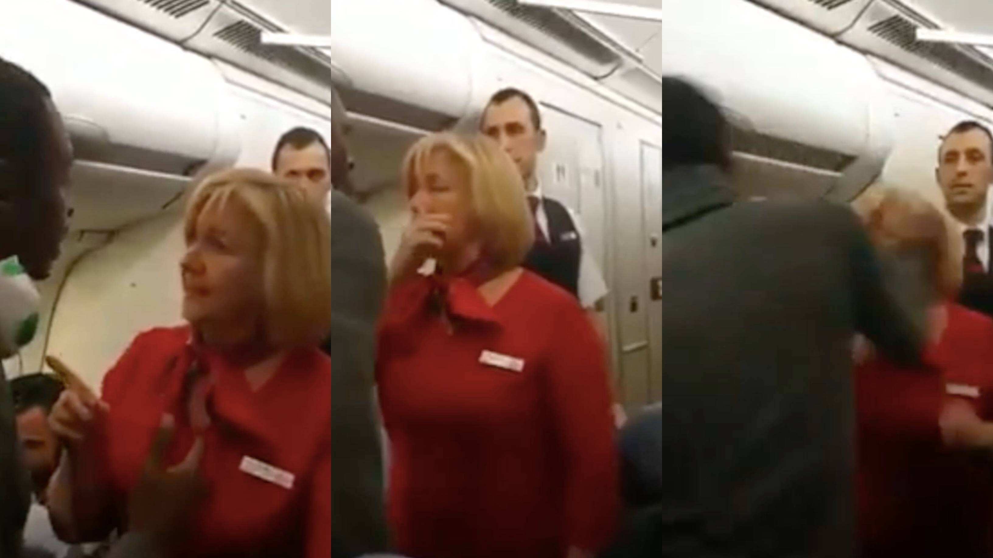 La grabación publicada el 17 de marzo en youtube, muestra todo el intercambio de palabras que hubo entre el sujeto y los miembros de la tripulación antes de llegar a los golpes.