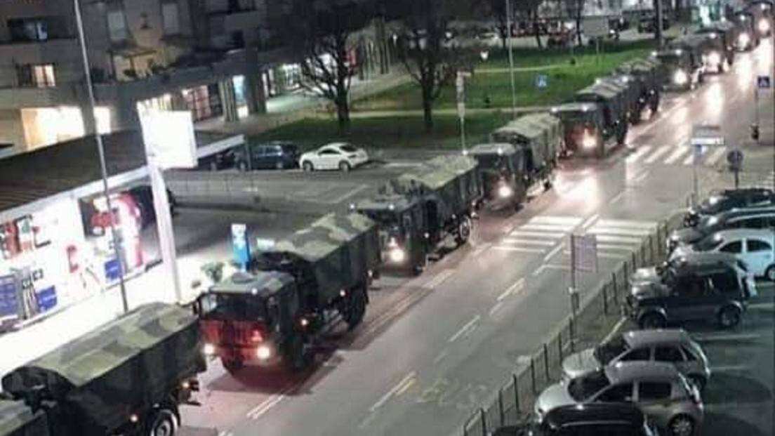 Se trata de un un convoy de camiones del Ejército italiano cargado con cadáveres para que sean incinerados en otras urbes italianas.