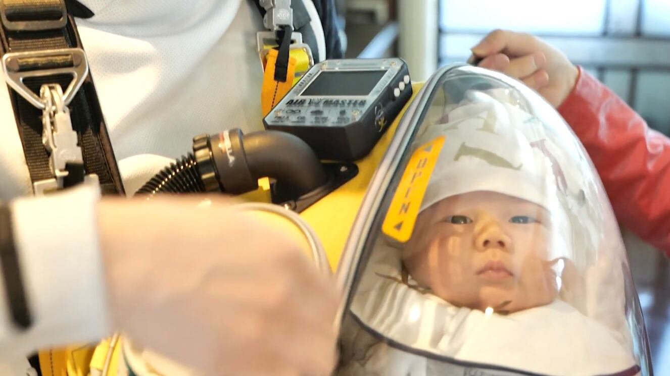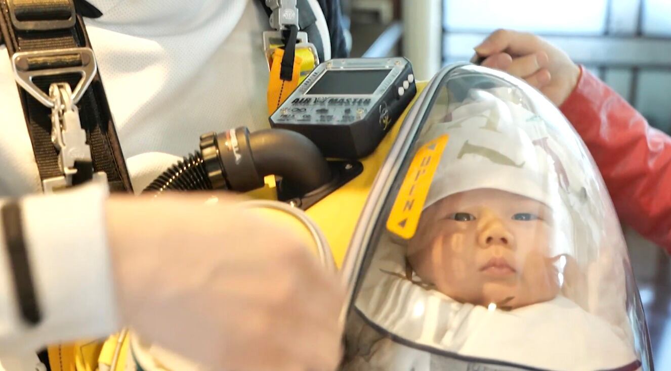 Una entrada especial con guantes permite a los padres acceder al bebé. “A mí me gustan las películas y juegos científicos, la estructura de la cabina de seguridad es similar al juego ’Death Stranding’, la vi en el juego”, explicó el padre. Cao Junjie dijo también que creó la cápsula para llevar a su bebé fuera, y que el traje especial permite dar un paseo por la calle a pesar del coronavirus.