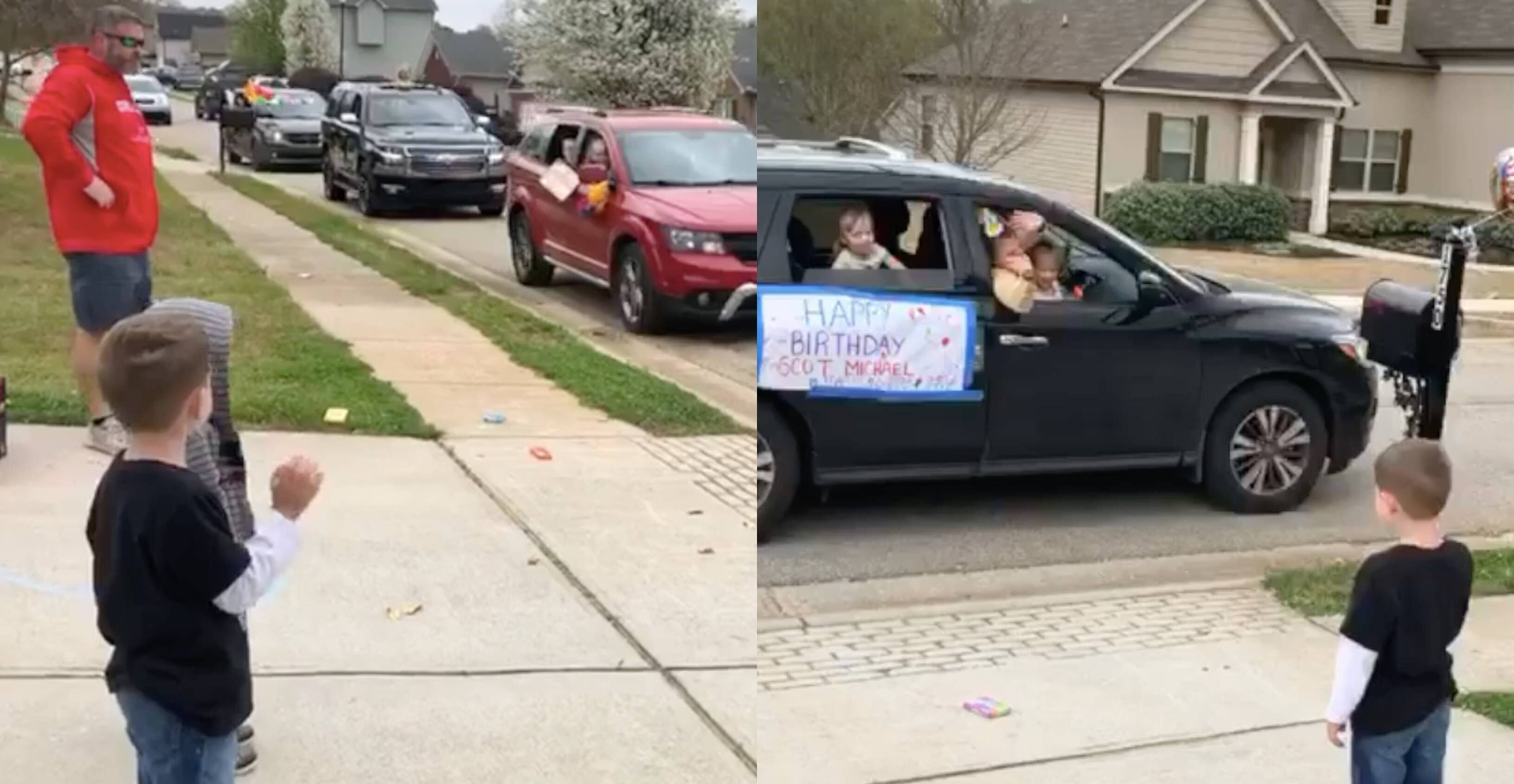 El pequeño Scot M. recibió el domingo 22 de marzo una peculiar celebración de cumpleaños, después de que su fiesta fue cancelada debido al coronavirus.