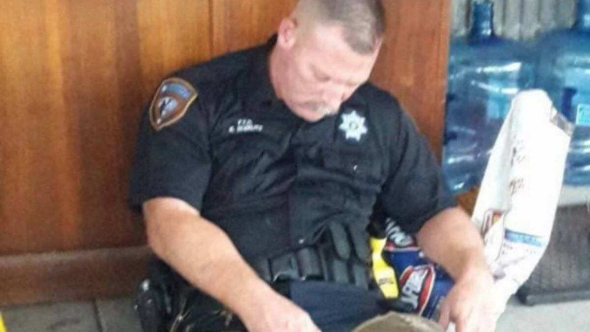 El texto explica que la foto fue enviada desde la oficina del sheriff del condado de Harris y asegura que el sujeto “trabajo trabajó más de 12 horas y durante toda la noche haciendo rescates en el agua”.