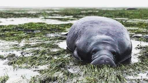 TAMPA, Florida, EE.UU. — Dos manatíes quedaron varados después de que el huracán Irma retiró el agua de la bahía de Sarasota, en Manatee County, Florida.