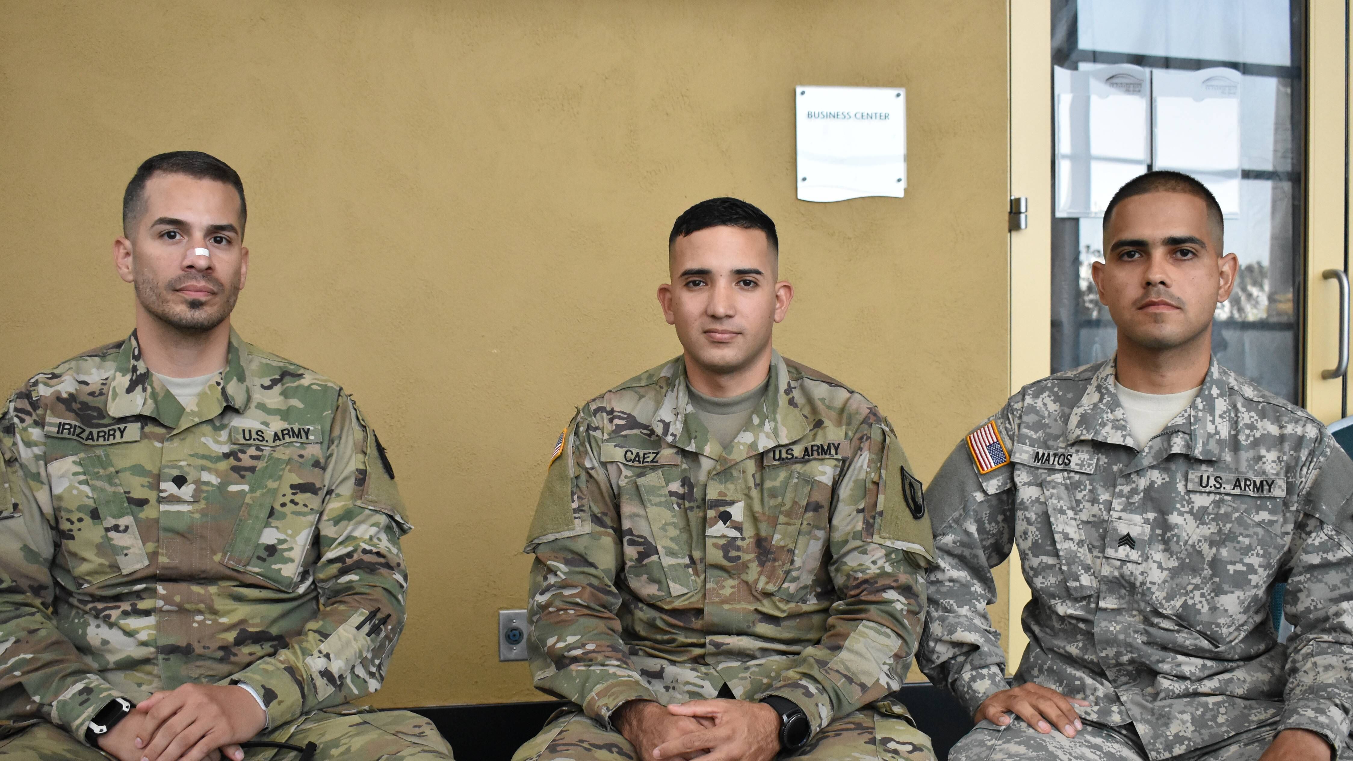 Rostro tenso, barbilla pronunciada y nariz perfilada. Mientras mira a lo lejos, vistiendo su ropa militar camuflaje, Hamiel Irizarry Martínez habla de cómo todos los días deja a su pequeño de cinco años para salir a levantar a Puerto Rico.