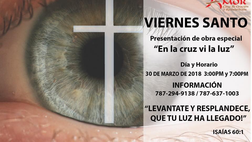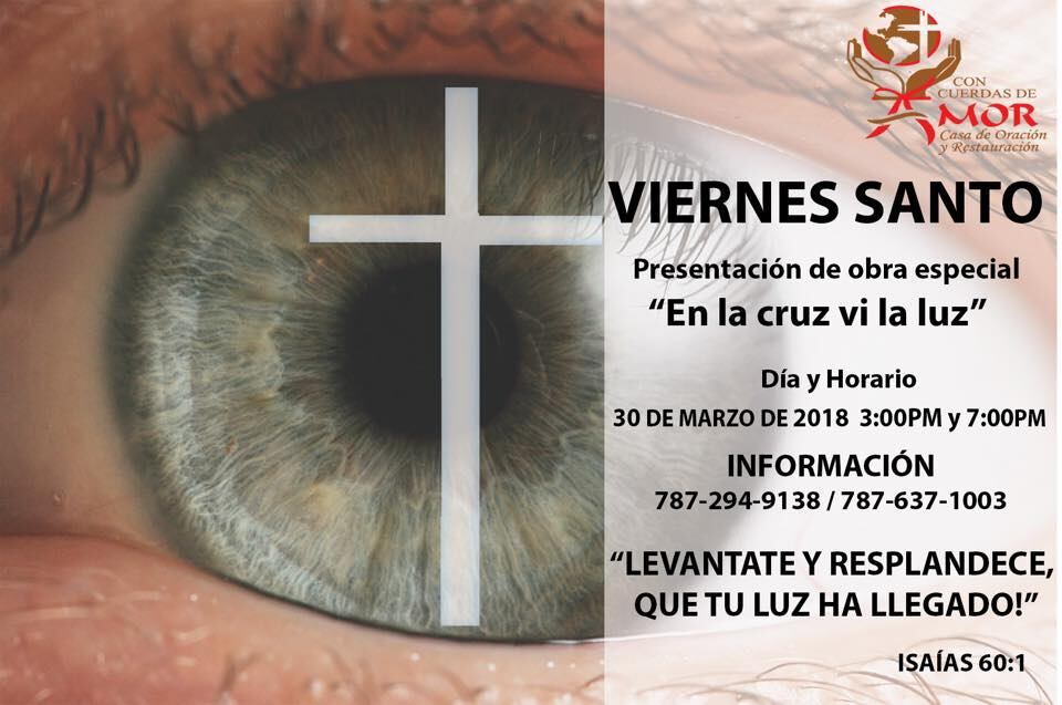 La Casa de Oración y Restauración Con Cuerdas de Amor (CCDA) presentará la obra “En la Cruz vi la Luz”, este próximo Viernes Santo, 30 de marzo, a las 3:00 p m y a las 7:00p m.
