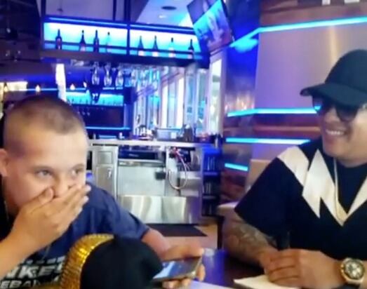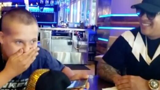 El menor saludó y abrazó al artista boricua rapidamente que lo vio llegar al lugar donde estaba con su familia.
