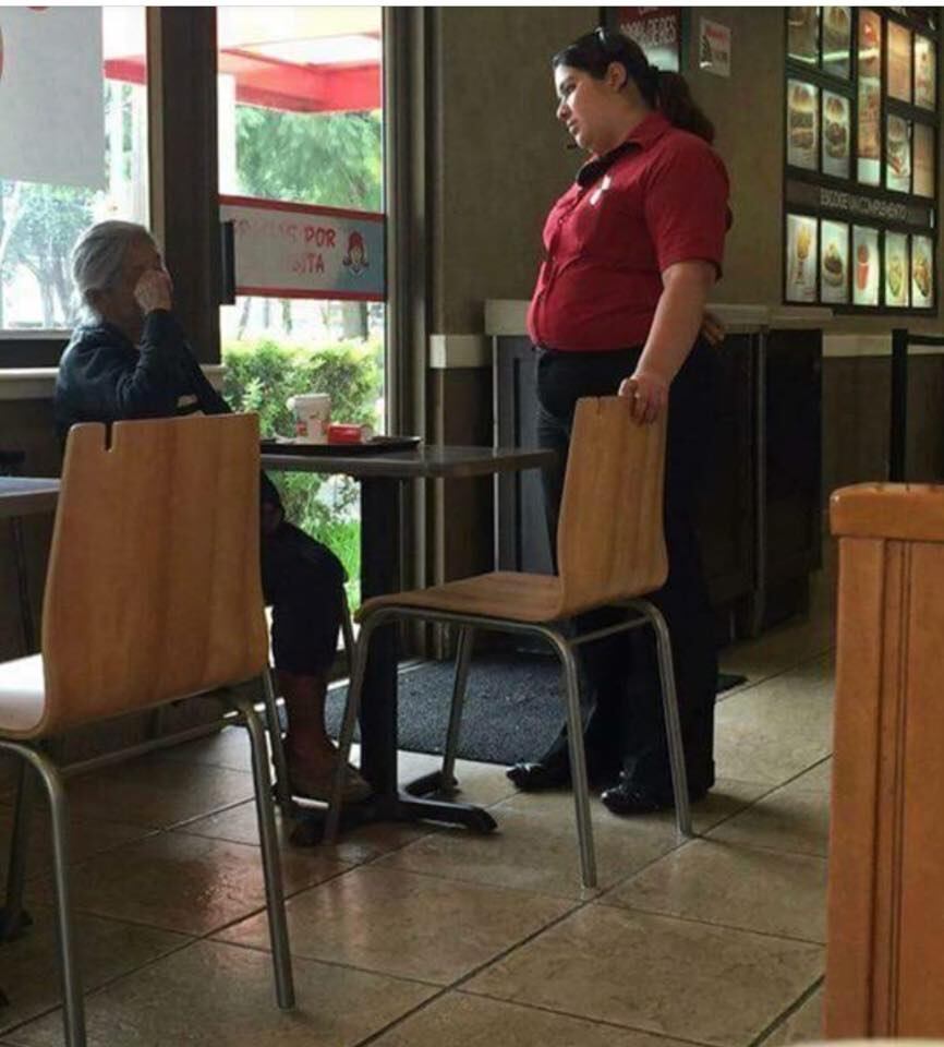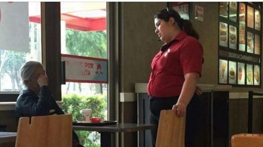 Entre una lluvia intensa y el frío que causa este estado climático, una gerente de un restaurante de comida rápida en la isla decidió darle el calor necesario a una anciana, un amable gesto que se viralizó en las redes sociales.