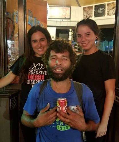 Dos empleadas de un conocido negocio en Mayagüez dieron, para llenar de felicidad, un regalo de cumpleaños a un indigente que se pasa por la zona realizando diferentes labores para poder comer.