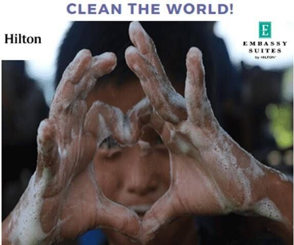 Hilton cuenta con una red de socios de reciclaje de jabón en todo el mundo que respaldan estos esfuerzos, el mayor de los cuales es “Clean the World”. A través de estas alianzas, los hoteles Hilton han contribuido a la donación de más de 11 millones de barras de jabón reciclado a comunidades necesitadas. En 2016, los 750 hoteles de las marcas, Embassy Suites by Hilton, Homewood Suites by Hilton y Home2 Suites by Hilton fueron los primeros en la industria en hacer del reciclaje de jabón un requisito de la marca. En enero de 2019, Hilton Garden Inn y Hampton by Hilton se unieron a la iniciativa.