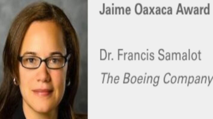 La doctora Francis Samalot, egresada del Recinto Universitario de Mayagüez (RUM), de la Universidad de Puerto Rico (UPR) recibió el Premio Jaime Oaxaca, que otorga la Society of Hispanic Professional Engineers (SHPE) y para el cual fue nominada por sus propios pares en la industria aeronáutica destacados en The Boeing Company, empresa para la cual labora desde el año 2007, se informó este martes.