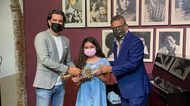 Ruiz, de 11 años, y quien es estudiante de la Escuela Libre de Música Ernesto Ramos Antonini en Hato Rey, fue la escogida. El pasado martes recibió la trompeta de manos de los afamados músicos Luis Perico Ortiz y Stevan Micheo.