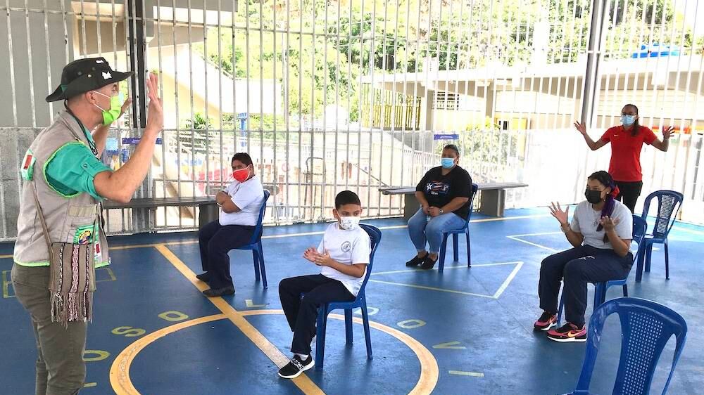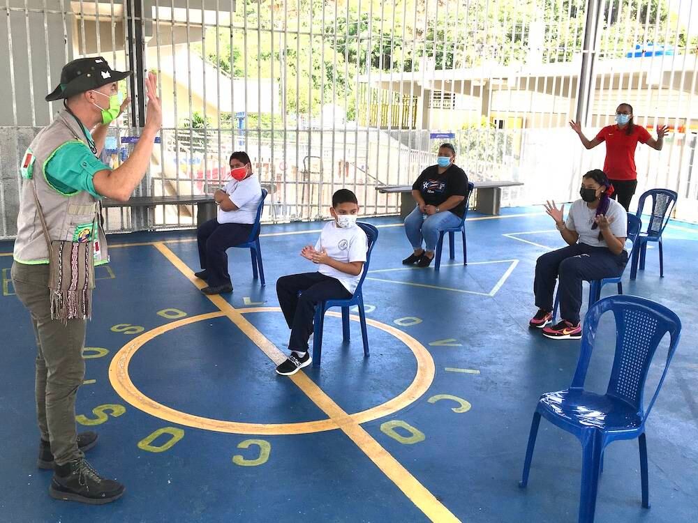 La entrega de materiales, que contó con la participación del personaje El Trotamundos, incluyó recomendaciones a los niños, maestros de educación física y padres de familia sobre acciones que los estudiantes pueden realizar en la escuela y en el hogar para desinfectar los materiales escolares y los juguetes, así como juegos seguros que se pueden llevar a cabo manteniendo el distanciamiento.