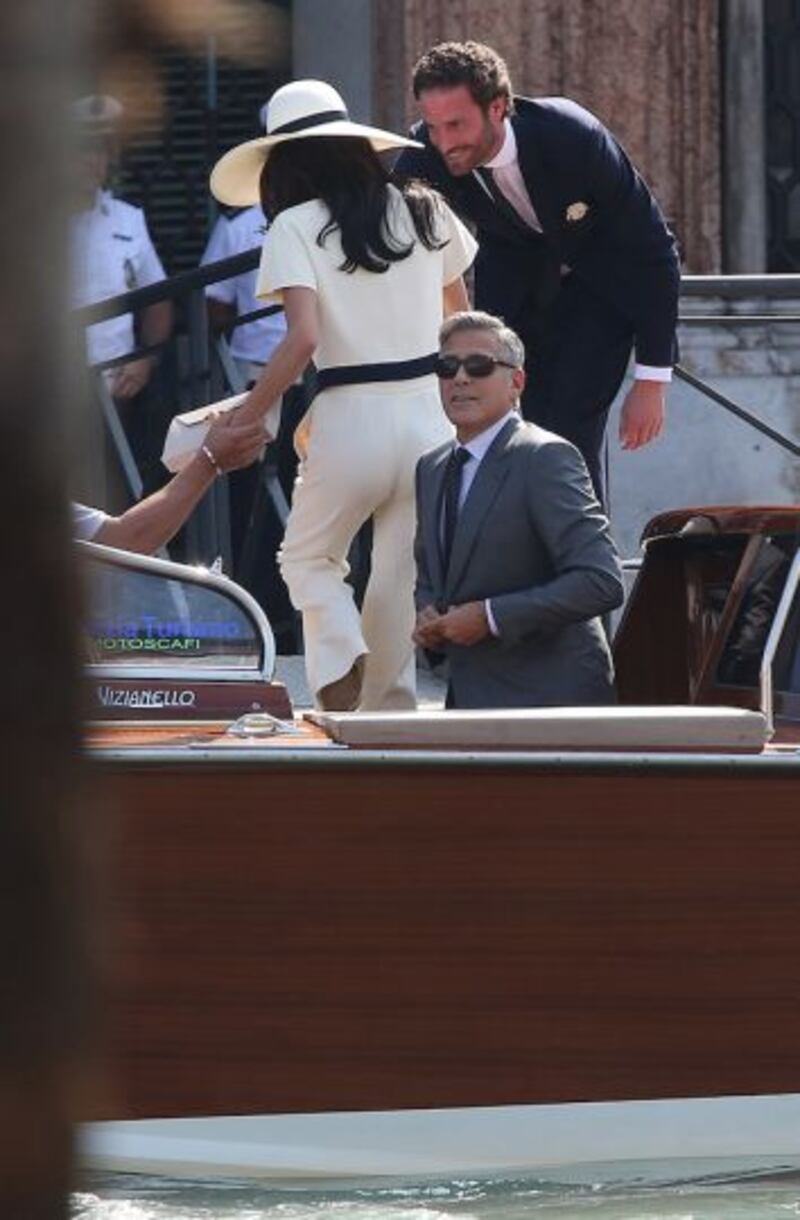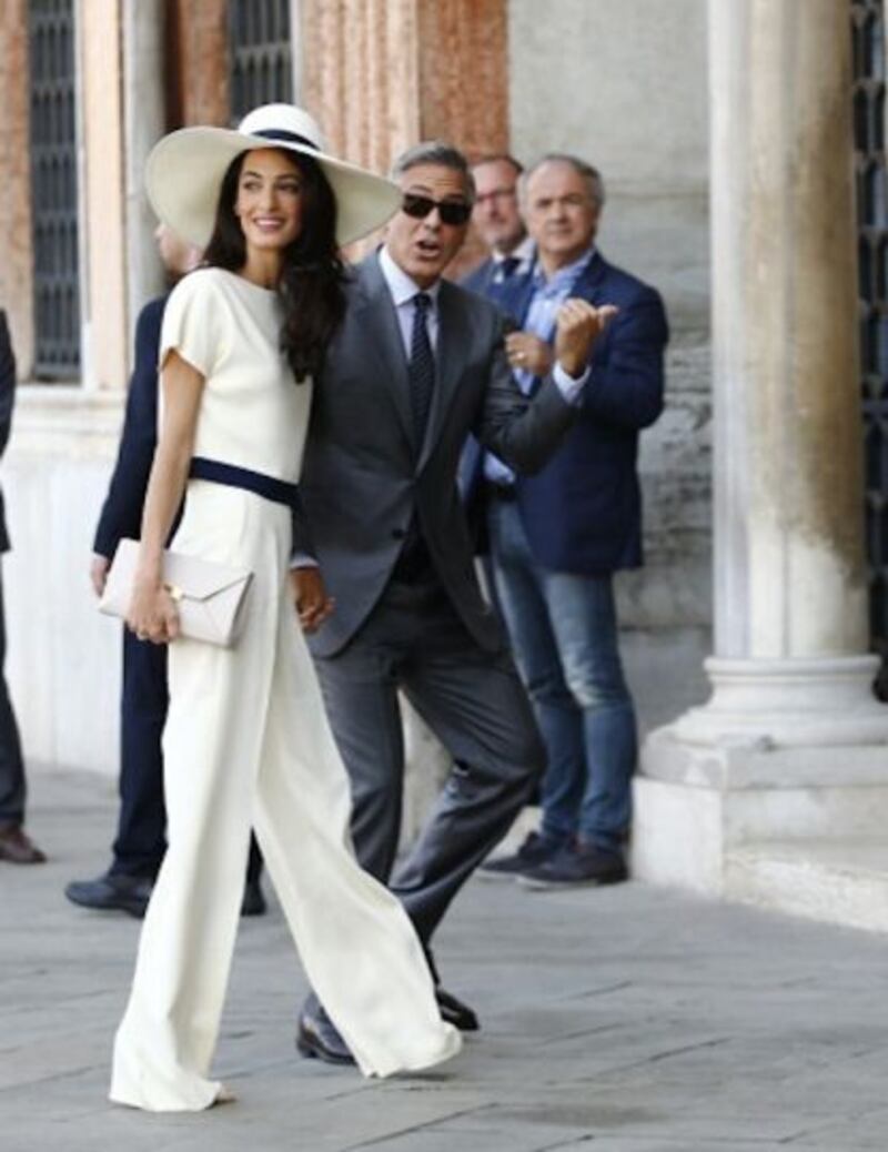 “Es un privilegio y un placer para mí vestirle –a Clooney– para esta ocasión, en la que protagoniza el papel más importante de su vida”, declaró Giorgio, quien es un íntimo amigo del actor.