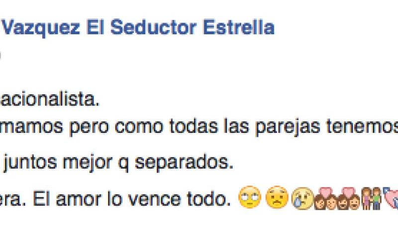Sin entrar en muchos detalles, el controvertible autor de los “Jovani Gram” escribió en su página de Facebook que “nosotros nos amamos pero como todas las parejas tenemos diferencias! Somos un duo, juntos mejor q separados. Todo se resolvera. El amor lo vence todo” (sic).