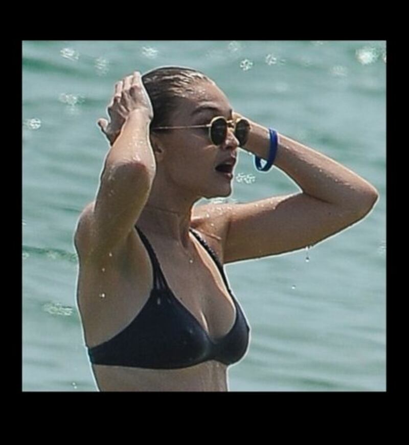 Sin embargo, la invitada que llamó más la atención fue Gigi, ya que fue vista con un pequeño bikini negro que dejaba muy poco a la imaginación.
