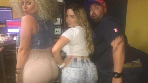 En la fotografía original aparecen de espaldas Burgos, Noris Díaz, conocida como “La Taína”, y Glerysbeth Pagán.