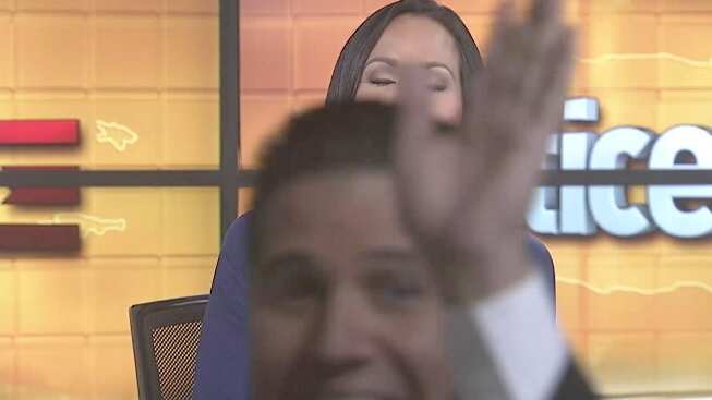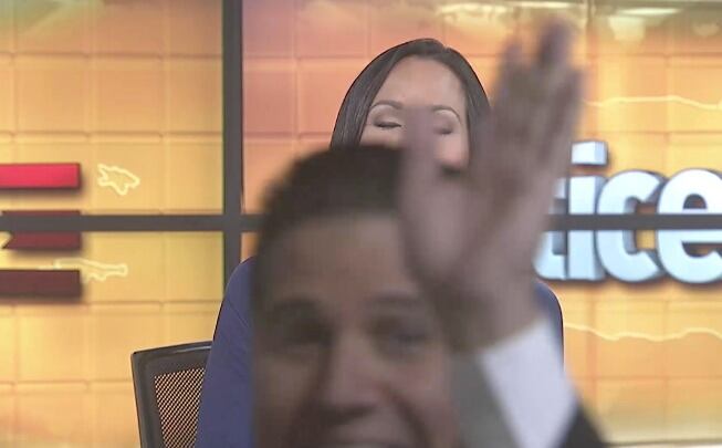El reportero ancla de “Noticentro al amanecer” (Wapa TV), Normando Honorio Valentín volvió hacer de las suyas mientras su compañera de labores Keylla Hernández daba unos avances del dicho noticiero.