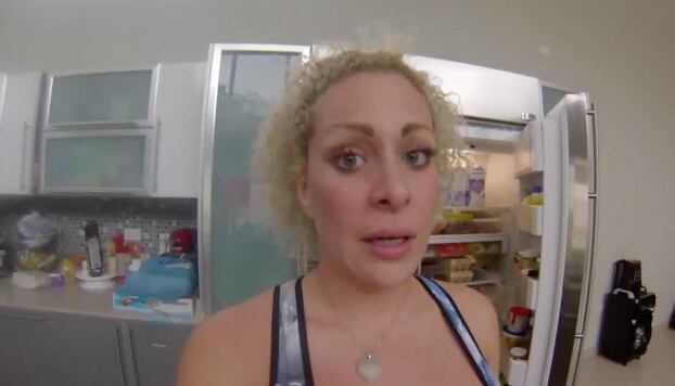 Tras culminar con el corte de los alimentos y pasarle la encomienda de la preparación de los mismos a su esposo el baloncelista Larry Ayuso, Burgos pasó al área de la piscina con su hijo donde experimentó dificultades al intentar llenar un flotador, necesitando de la ayuda de su esposo y su padre. Al lugar también llegó la madre de esta para disfrutar de un día soleado en familia.