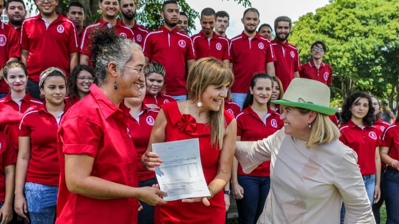 La alcaldesa de San Juan, Carmen Yulín Cruz Soto, entregó hoy un donativo de $35 mil al Coro de Estudiantes de la Universidad de Puerto Rico para cubrir el costo de representar a Puerto Rico en el Festival Coral Internacional: Costa Rica por la Paz 2017″, que se celebrará del 22 al 26 de junio en la ciudad capital de San José.