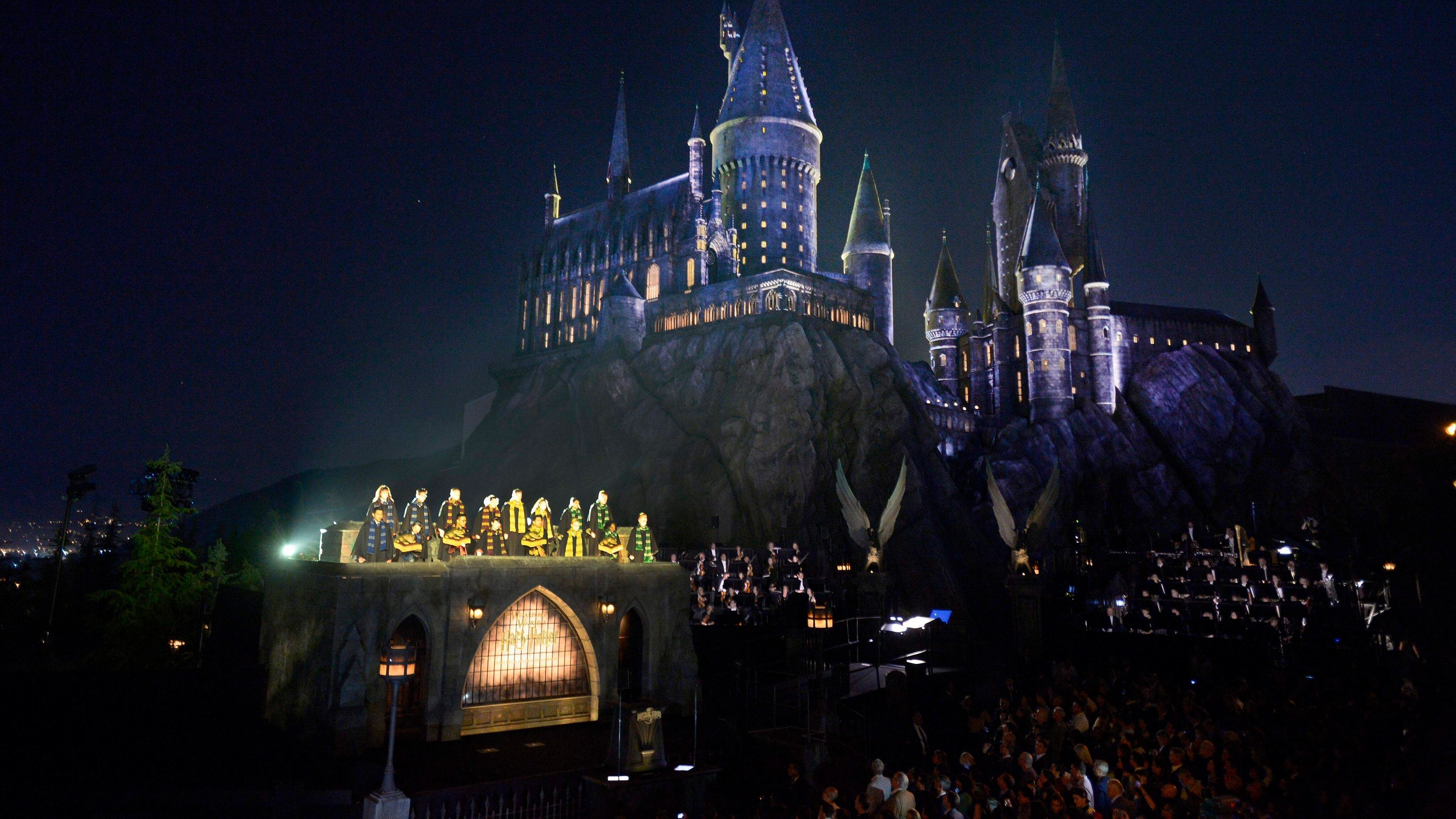 El espectáculo, que contiene elementos icónicos de las casas de la escuela de magia Hogwarts (Gryffindor, Hufflepuff, Ravenclaw y Slytherin), se emitirá varias veces durante cada noche.