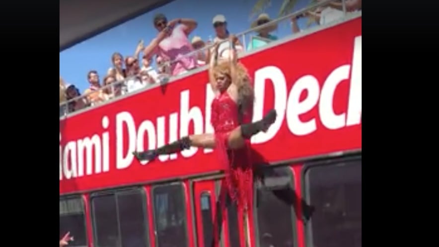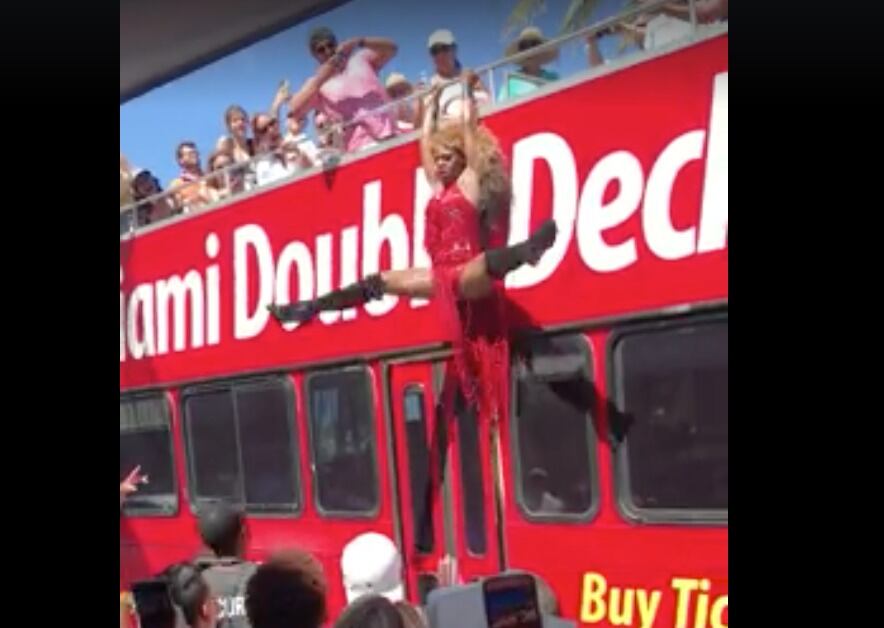 La transformista puertorriqueña Elishaly D’witshes se ha hecho viral en las redes sociales en los pasados días tras realizar un espectacular salto desde un autobús de dos niveles, el cual estaba lleno de turistas, en la ciudad de Miami, Florida.
