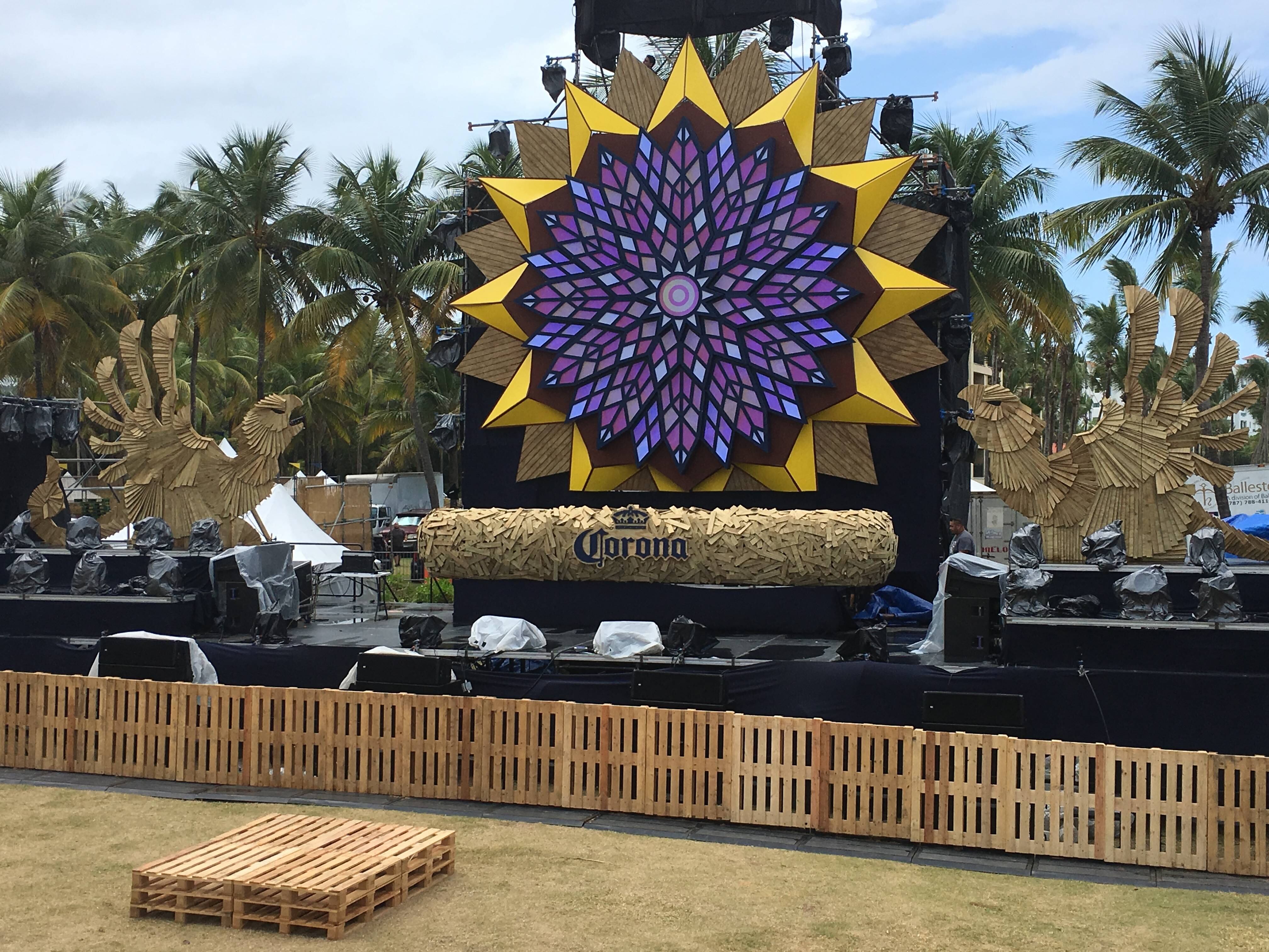 El espacio destinado para la actividad cuenta con varias estaciones de comida y puestos de artesanía. De acuerdo con Ariel Avilés, productor general del evento, el montaje incluye más de 1,000 paletas de carga recicladas ya que buscan que Corona Sunset Festival sea ecoamigable.