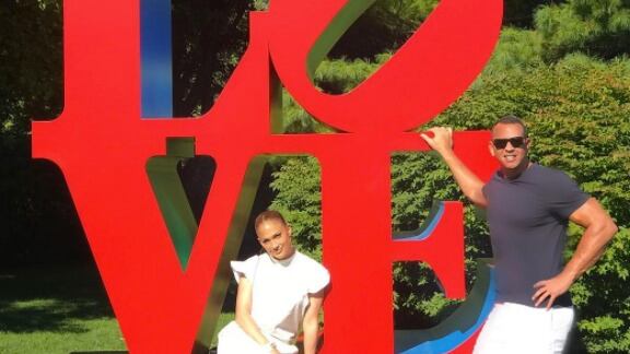 La ‘Diva del Bronx’ publicó un video, donde se le ve muy sonriente, además baila y canta mientras Rodríguez conduce. Por su parte, ARod subió una foto junto a su pareja en las famosas letras que leen “Love”.