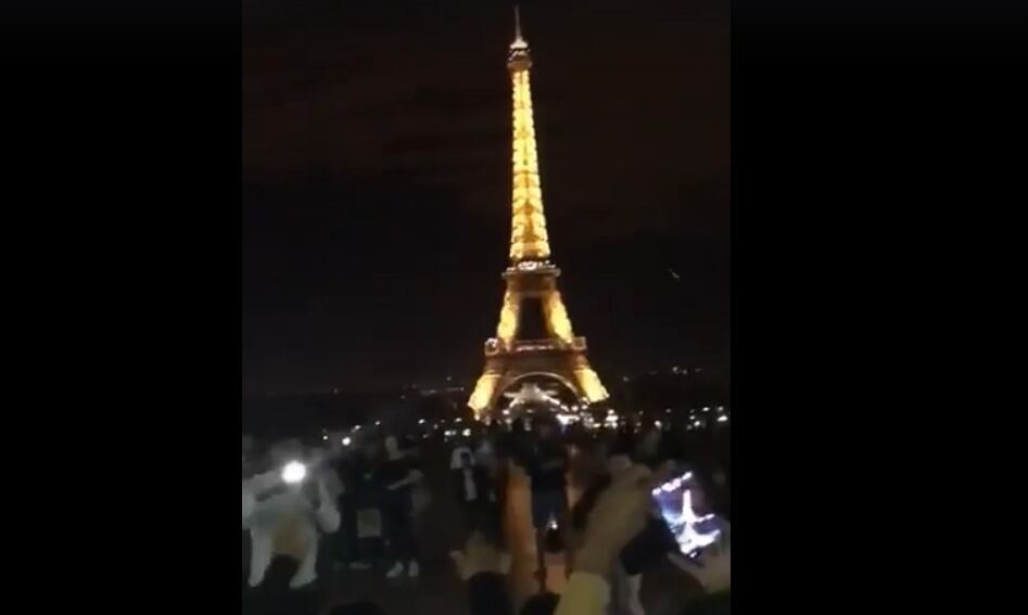En el video, colgado en Facebook, se puede observar cómo varias personas comienzan a grabar el momento, mientras el grupo de jóvenes baila y canta al ritmo de la canción, con la emblemática Torre Eiffel de fondo.