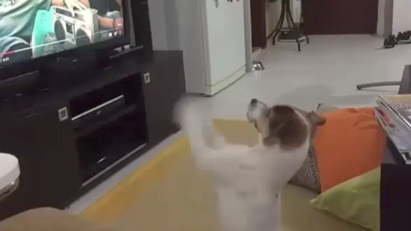 Lo curioso es que cuando sus dueños pausan la canción, el perro se desespera y ladra para que vuelvan a colocar la canción.