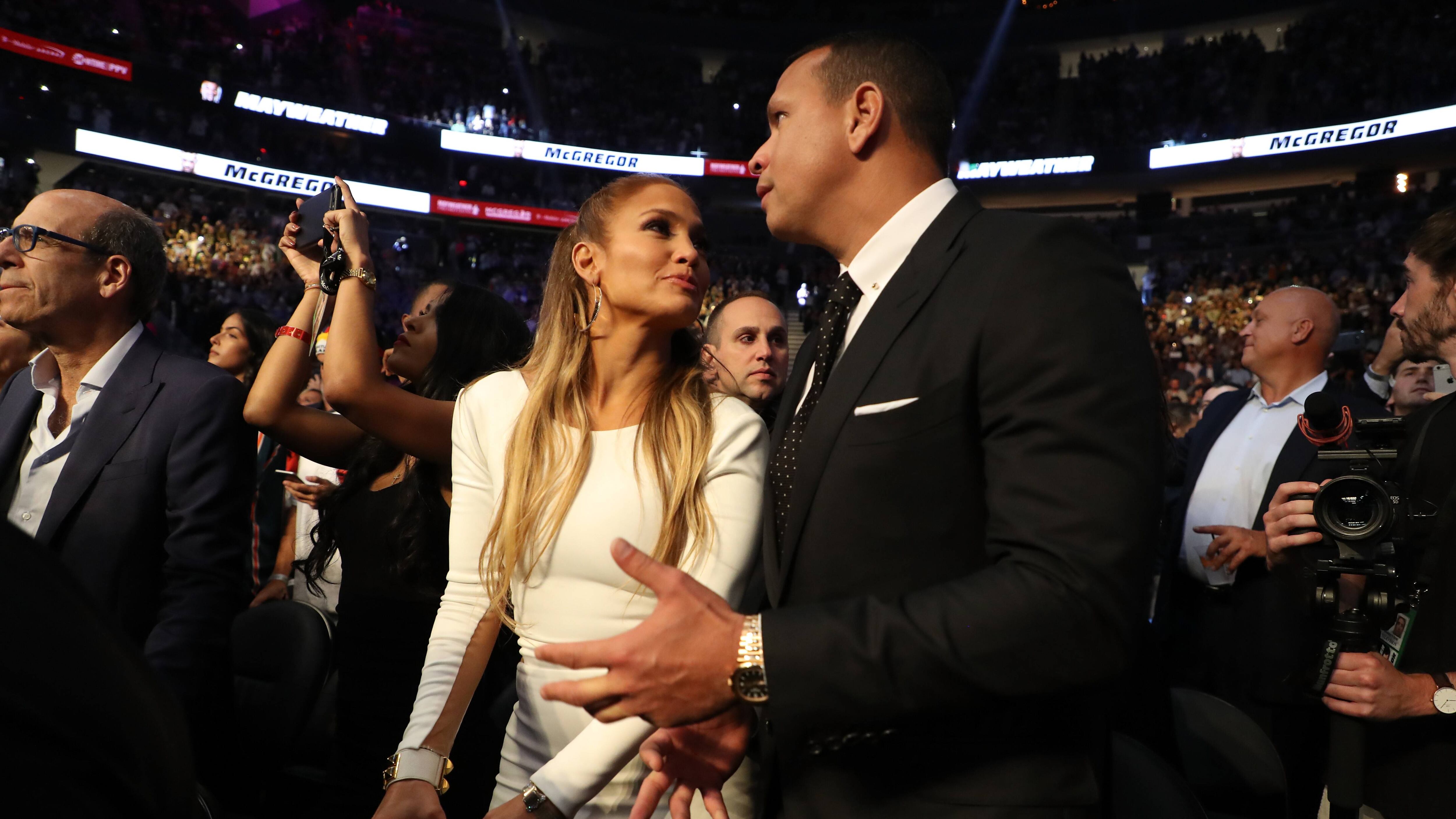 La pelea, en la que el estadounidense ganó $100 millones y el irlandés $75 millones, contó con la asistencia de varios famosos. Entre ellos la pareja de la cantante, actriz y bailarina con el expelotero.