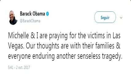 “Michelle y yo estamos rezando por las víctimas de Las Vegas. Nuestros pensamientos están con sus familias