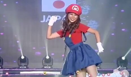 La joven asiática llevó un traje inspirado en el personaje de videojuegos Mario Bros. En su pasarela, Tsuji realizó cómicos movimientos y poses.