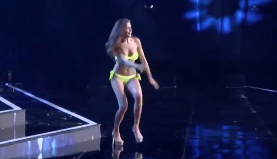 Uno de los resbalones lo protagonizó la puertorriqueña Brenda Azaria Jiménez, quien al bajar uno de los escalones en su pasarela de traje de baño se viró su tobillo izquierdo y casi cae al suelo. Esta logró balancearse y terminar triunfante su paso.