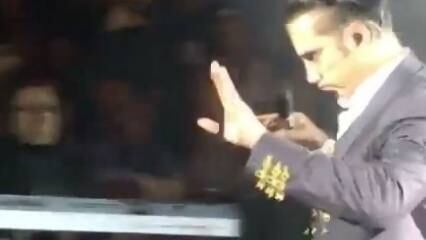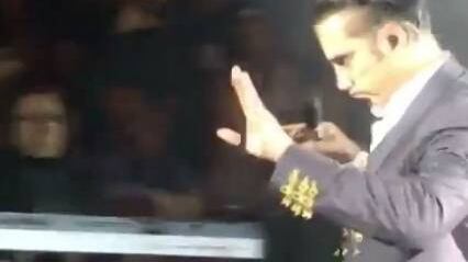 También se puede ver como comienza a cantar la canción de su papá, Vicente Fernández, “Para Siempre”, sin embargo se detiene para abrazar a un fan y es al parecer se le olvida la letra de la canción.