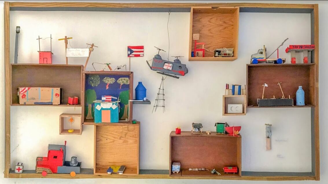 “El marco en madera representa los daños que sufrió la naturaleza y el gris simboliza los daños en la infraestructura de Puerto Rico. Dentro del marco se reutilizaron gavetas de escritorios que se dañaron con el agua, para exponer cada pieza de manera individual, enlazadas entre sí como el vivo espejo de lo ocurrido en Yabucoa”, expuso la educadora al destacar que, además de expresar sus preocupaciones, trabajan para embellecer los espacios con sus obras.