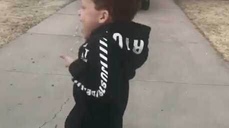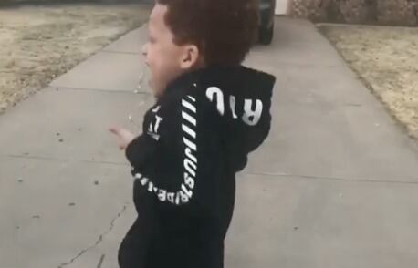 Esta vez, el niño imitó a su progenitora cuando esta corre “sin brasier”.