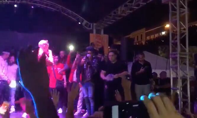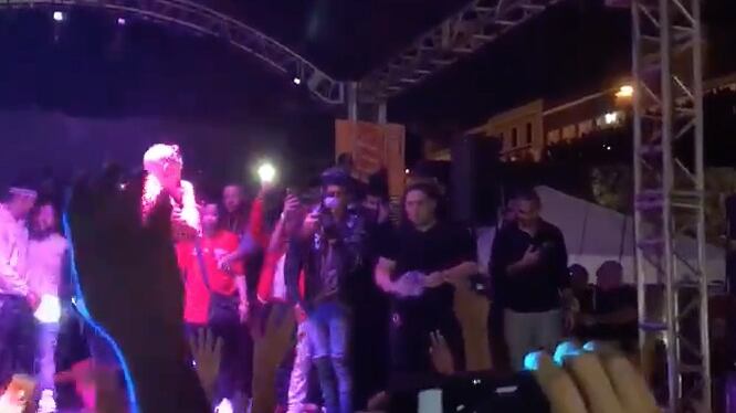 Este entonó varios de sus famosos temas como “Soy peor”, “Chambea” y “Krippy Kush”, entre otros. Mientras ponía a bailar a muchos de sus fans con la última canción mencionada, personas que se encontraban detrás del cantante lanzaban “moñas” de marihuana al público.