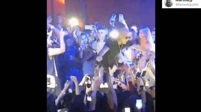 Un vídeo publicado en Twitter muestra el momento en el que el cantante da el salto y desaparece entre la multitud.