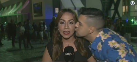 En plena transmisión en vivo en las Fiestas de la Calle San Sebastián, un hombre besó a la reportera del canal Wapa-TV Sylvia Verónica Camacho.