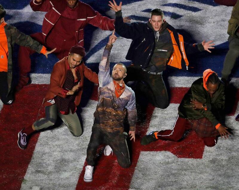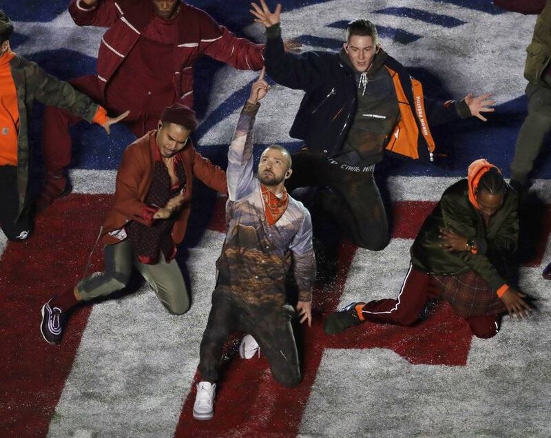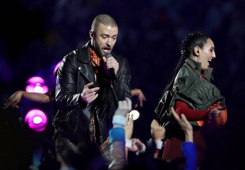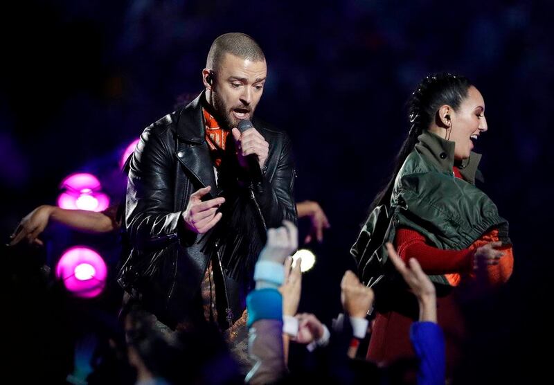 Con un increíble show de luces, Justin Timberlake salió a cantar e interpretó clásicos de su repertorio, como Rock your body, Suit n’ Tie, Cry Me a River, Señorita y Sexy Back, entre otras.
