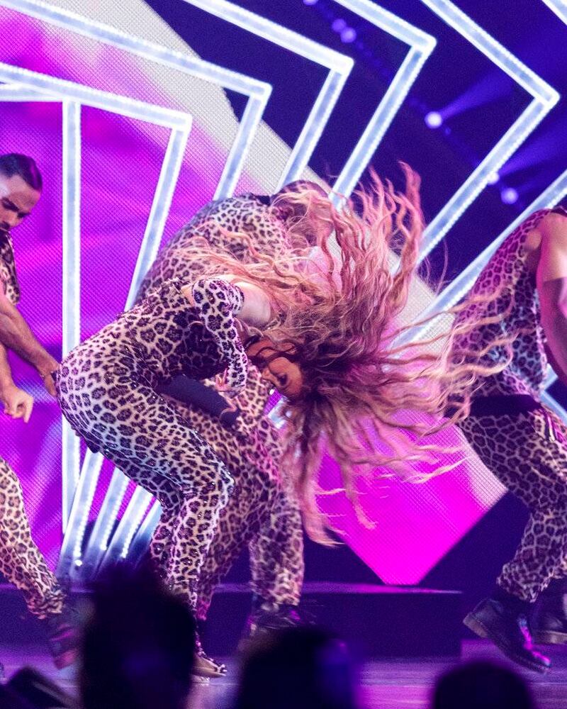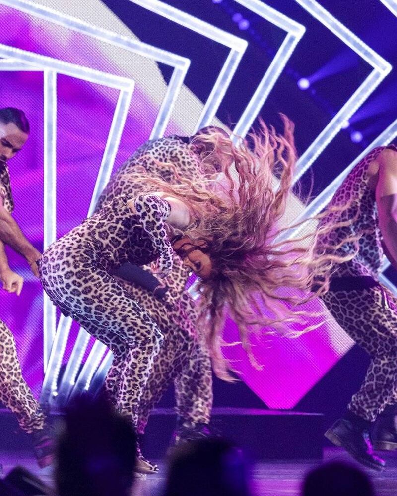 Terminó su presentación con una versión animada de “Let’s Get Loud” mientras sus bailarines tocaban congas y explotaban fuegos artificiales.