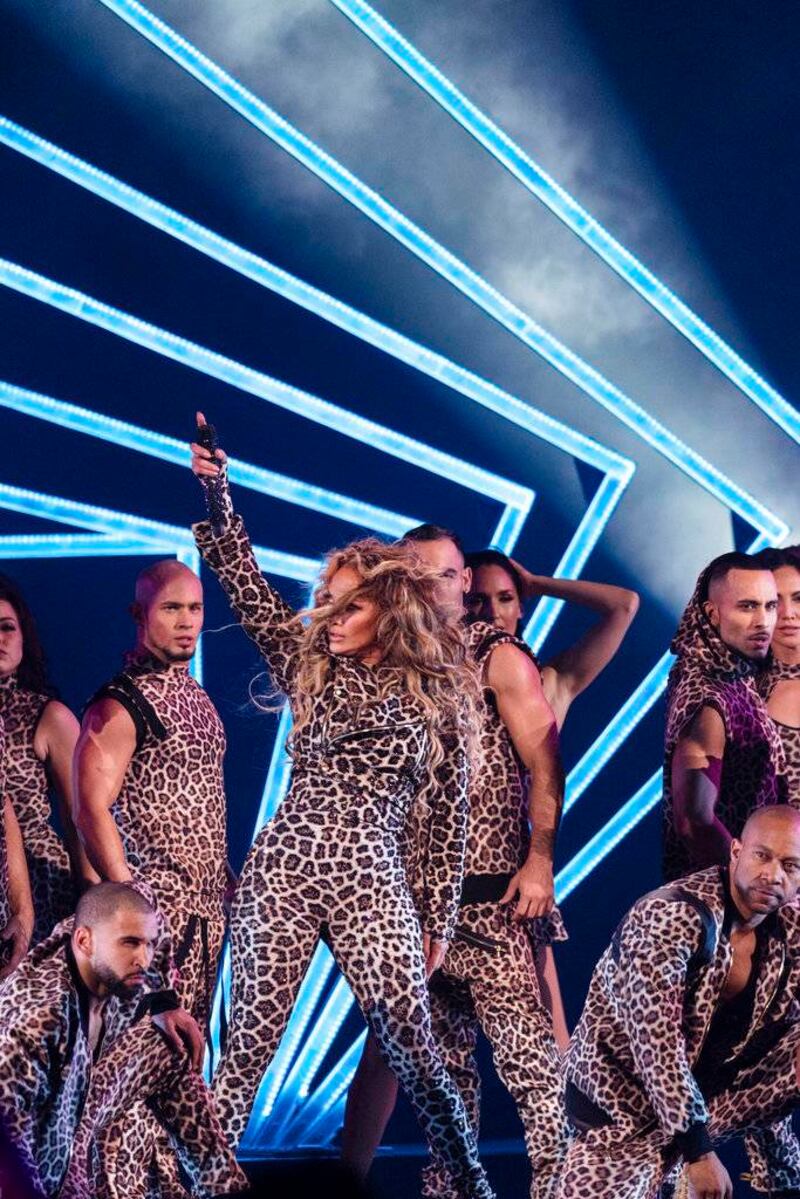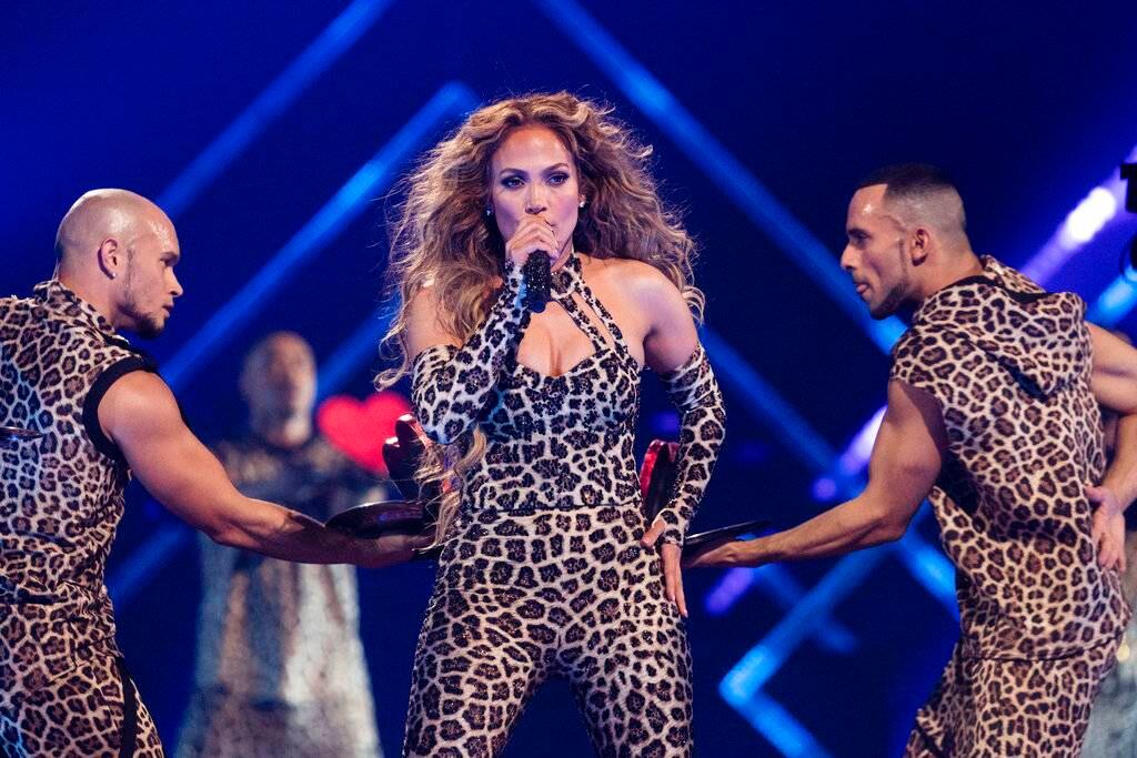 Lopez, de 48 años, también interpretó “Respect” de Aretha Franklin; bailó “Bodak Yellow” de Cardi B y “Havana” de Camila Cabello. Ne-Yo la acompañó en un dueto con “All I Have” y dejó que DJ Khaled entretuviera al público mientras ella se cambiaba de vestuario.
