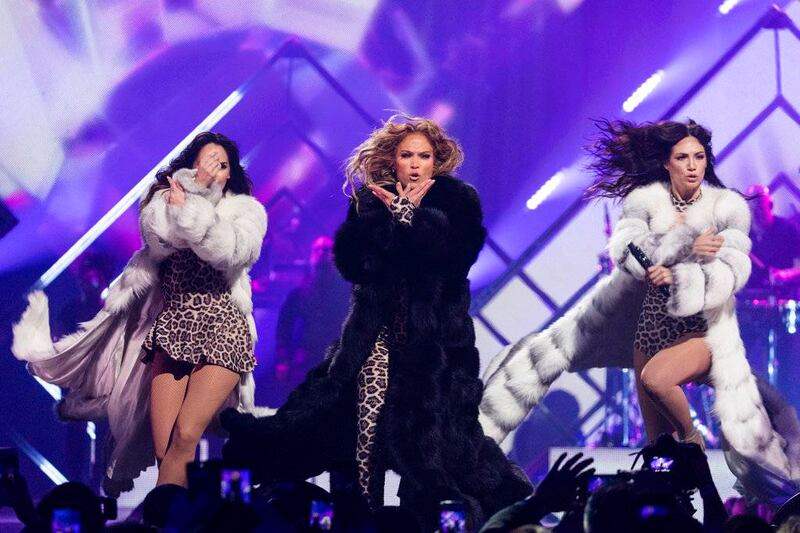 López llevaba puesto un largo abrigo de piel mientras bailaba “If You Had My Love” con la que mezcló un poco de “The Glamorous Life” de Sheila E.