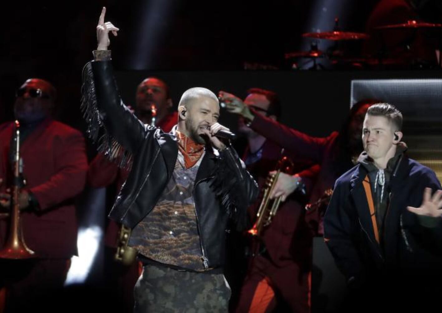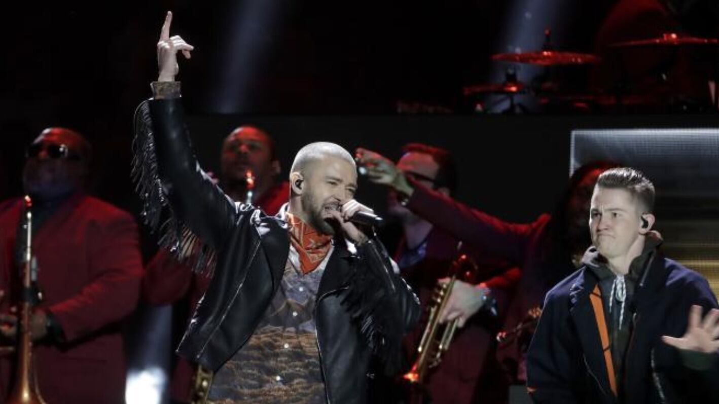 Timberlake ofreció un espectáculo con luces láser, espejos y decenas de bailarines que hicieron vibrar el estadio U.S. Bank donde interpretó diversas canciones que lo convirtieron en la estrella que ahora es como “Can´t Stop the feeling”, “Cry me a river”, “Sexy Back”, entre otras.