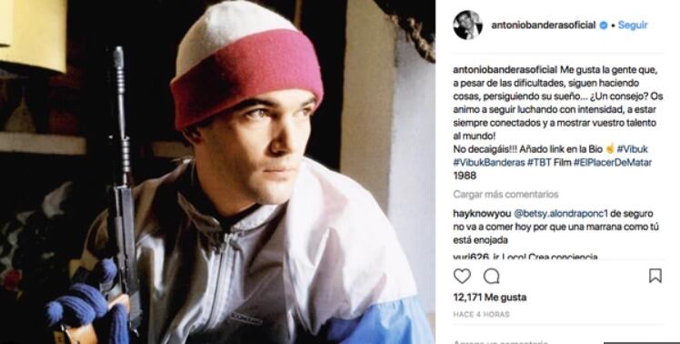 El reconocido actor español ,Antonio Banderas, pidió disculpas al público luego de publicar una foto posando con un arma de fuego. En la imagen aparece encarnando al asesino Luis, en el filme “El placer de matar”, estrenado hace 20 años.